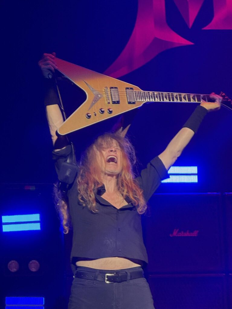 A key detail that made Winnipeg feel special was how complete the night’s arc was. This wasn’t just “play the hits and go.” The set moved from sharp new material into a run of legacy tracks that covered multiple eras, then stacked its finale with songs that feel like metal monuments. “Symphony of Destruction” doesn’t need an introduction anywhere on earth — it’s an arena ritual — and “Peace Sells” has that sneer that still cuts even when you’ve heard it a thousand times. Ending with “Holy Wars… The Punishment Due” is the kind of closer that leaves a crowd feeling like it survived something, not just attended it.